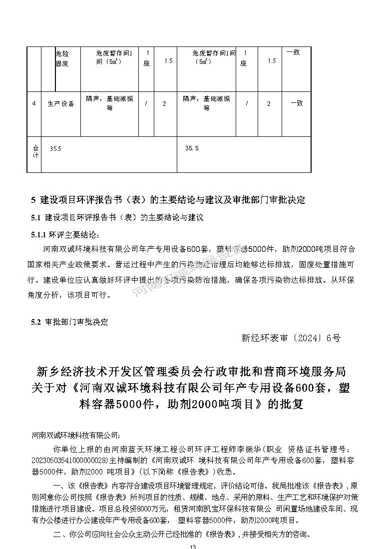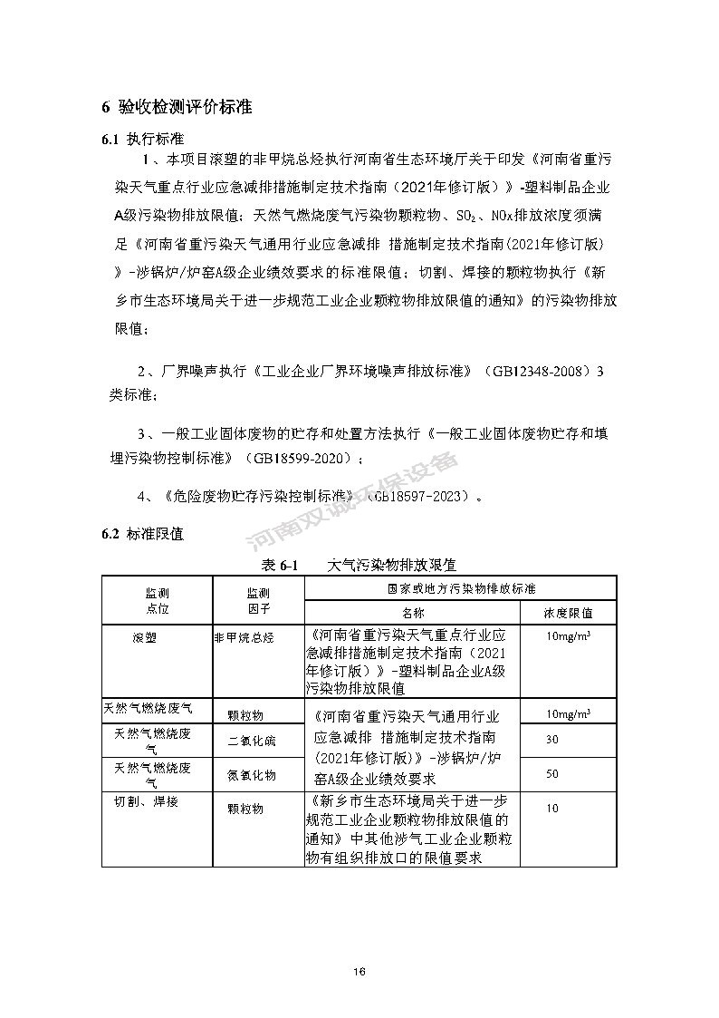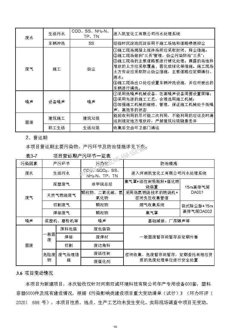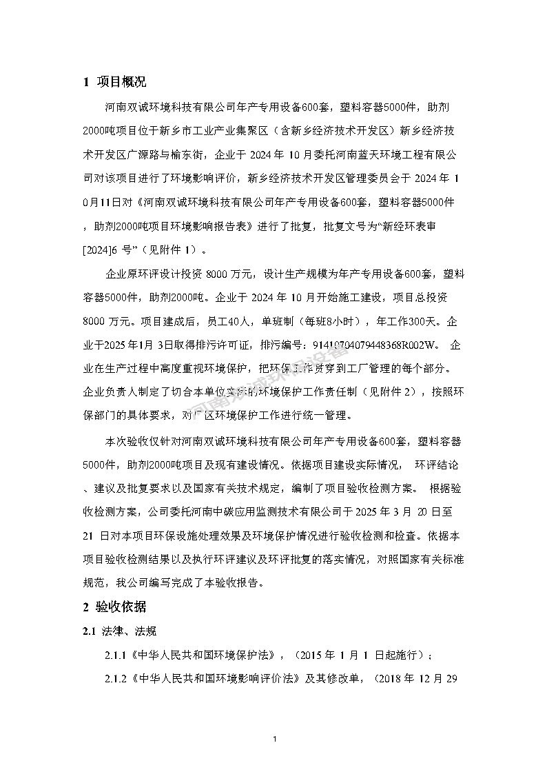 河南雙誠環境科技有限公司 年產專用設備600套,塑料容器5000件項目竣工環境保護 驗收監測報告