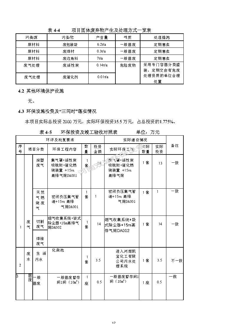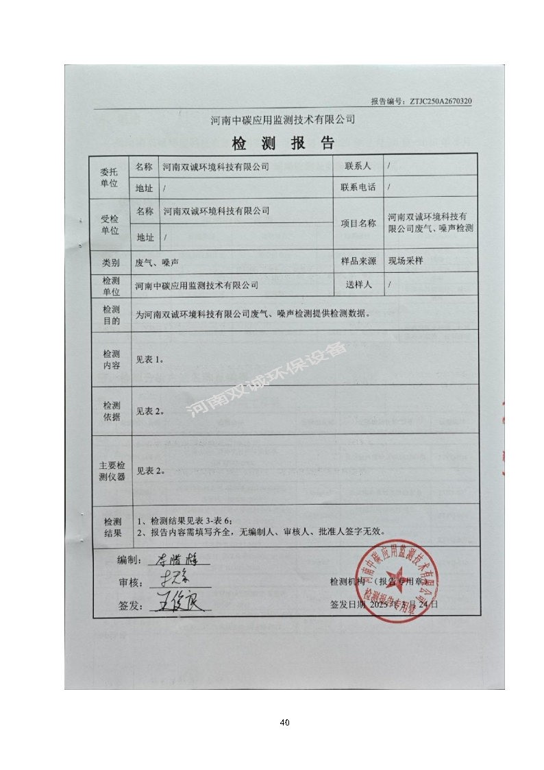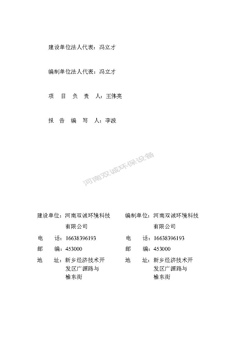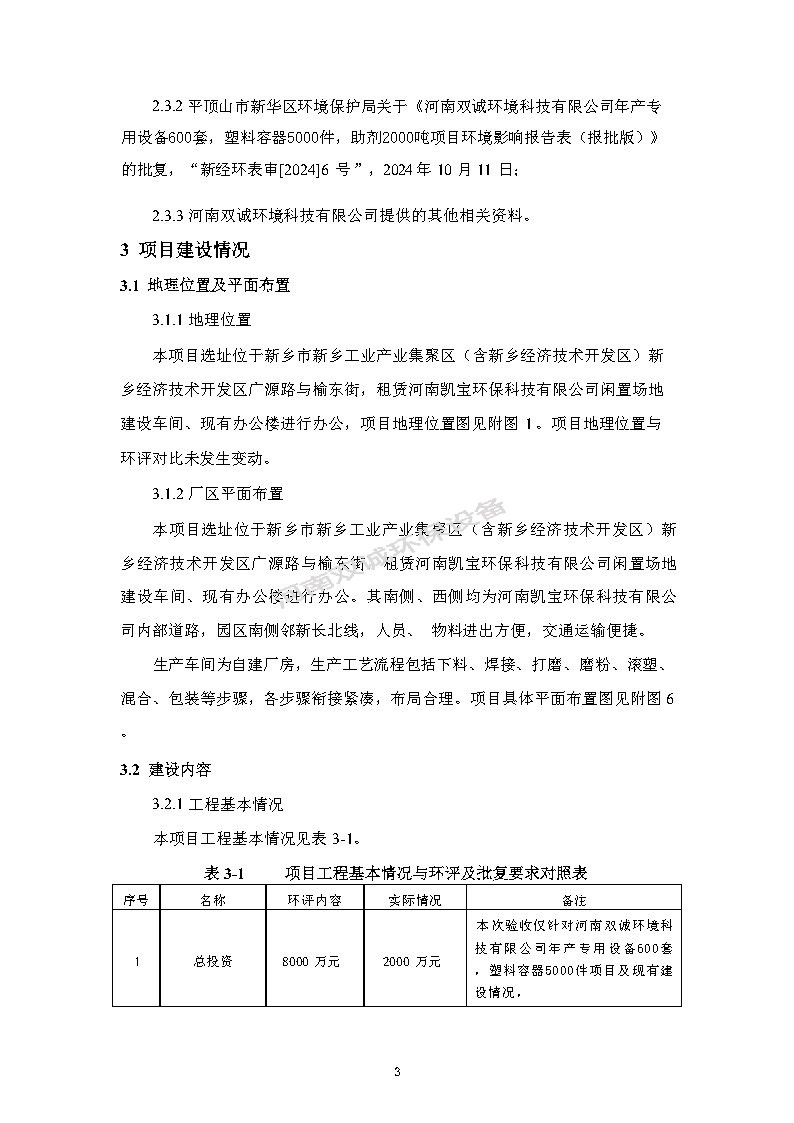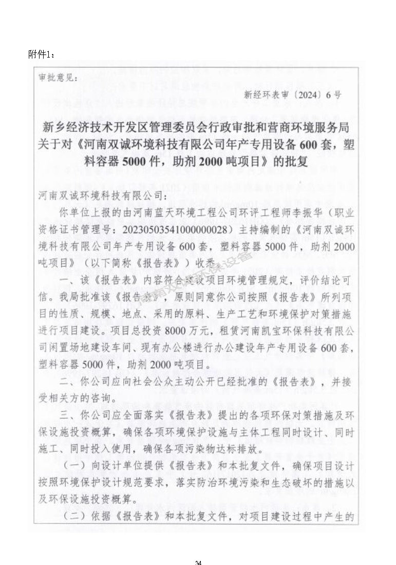 河南雙誠環境科技有限公司 年產專用設備600套,塑料容器5000件項目竣工環境保護 驗收監測報告