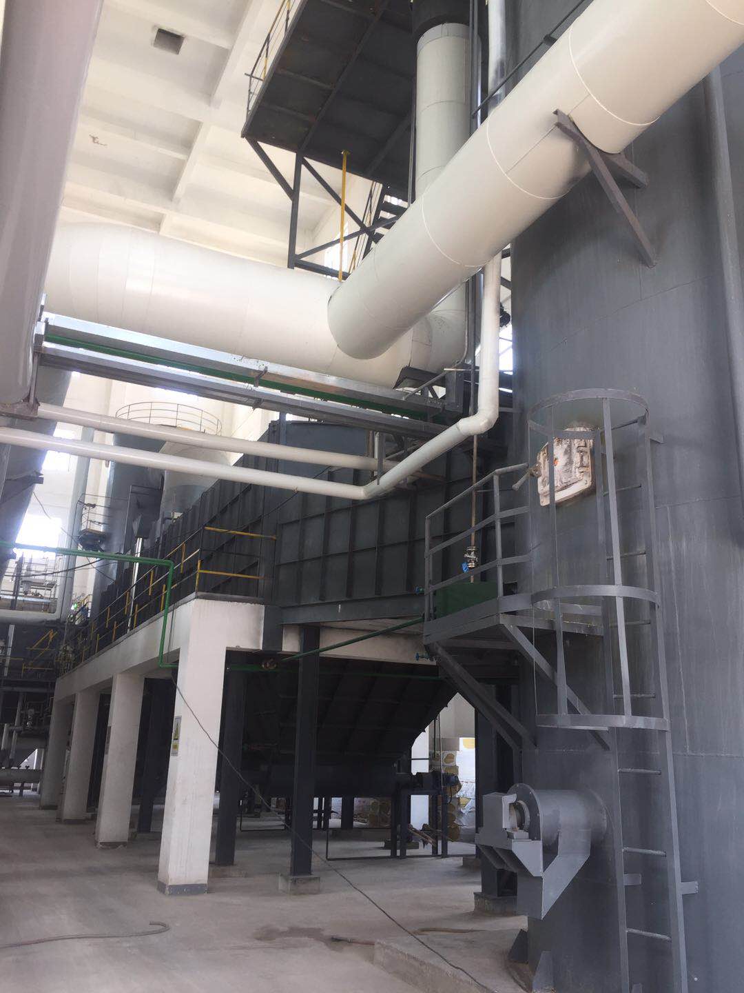 經(jīng)過(guò)預(yù)處理的廢液、固廢或廢氣由進(jìn)料裝置進(jìn)入一次燃燒室,廢料與助燃空氣在焚燒爐爐膛內(nèi)經(jīng)過(guò)復(fù)雜的物理、化學(xué)反應(yīng),使廢料中的有害物質(zhì)徹底分解,焚燒溫度控制在750-800℃(不同的物料焚燒溫度不同);產(chǎn)生的煙道氣進(jìn)入迷宮沉降除塵器除鹽(底部自動(dòng)出鹽),然后進(jìn)入二級(jí)燃燒室進(jìn)行高溫焚燒,二級(jí)燃燒室內(nèi)焚燒溫度控制在1100℃左右,產(chǎn)生的高溫?zé)煹罋饨?jīng)SNCR脫硝后,進(jìn)入余熱回收裝置,高溫?zé)煹罋獾牟糠譄崃哭D(zhuǎn)化為蒸汽回收,煙氣溫度降至550℃左右,之后進(jìn)入G-G換熱器與煙氣再加熱器1的熱側(cè),為補(bǔ)燃空氣預(yù)熱和將布袋除塵器出來(lái)的煙氣再次升溫至脫硝所需溫度,同時(shí)煙氣降溫至500℃左右,(根據(jù)國(guó)標(biāo)要求:為避免二噁英的再次合成,煙氣要在1S內(nèi)從500℃左右降至200℃以下),煙氣進(jìn)入半干急冷塔降溫至200℃以下,經(jīng)布袋除塵后,煙氣經(jīng)煙氣再加熱器1加熱升溫至350℃左右,通過(guò)SCR脫硝,進(jìn)入煙氣再加熱器2熱側(cè)作為熱源加熱汽水分離后的煙道氣,之后進(jìn)入噴淋吸收塔脫除酸性氣體,且再次降溫至75℃左右,進(jìn)入汽水分離器脫水后,經(jīng)過(guò)煙氣再加熱器2的冷側(cè)被加熱至120℃左右經(jīng)煙囪外排。